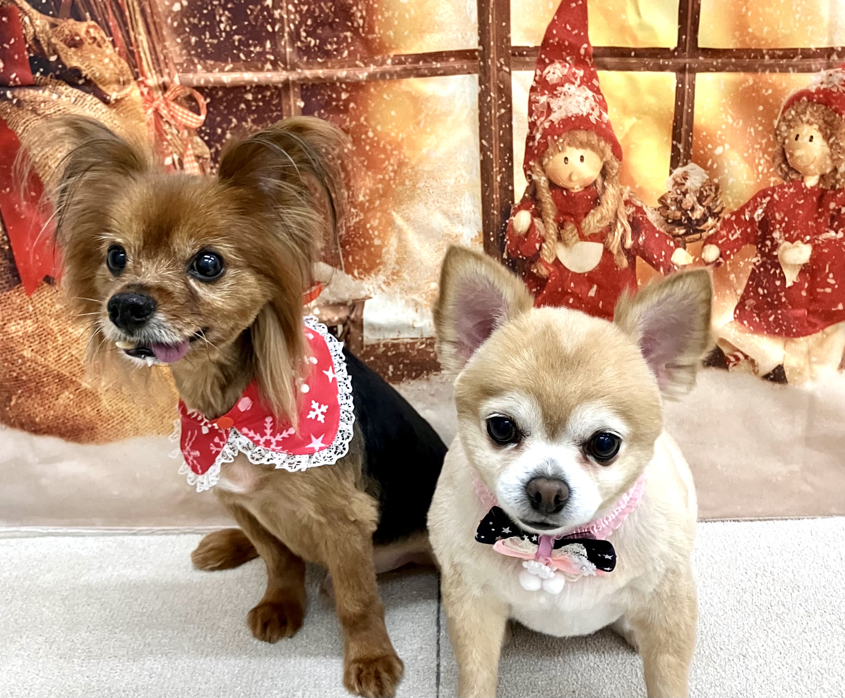 本日トリミングさせて頂いたわんちゃんはマルプーのサブレくんとぷーくん、チワワのソラくん、ダックスのQooちゃん、ペキニー・・・2024.12.24のお客様